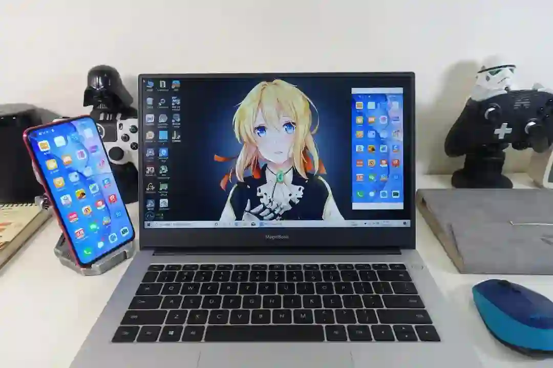 目前新出的这几款荣耀笔记本,最让大家称道的应该就是多屏协同功能了。荣耀笔记本14 自然也不会缺席这个功能。多屏协同让笔记本电脑和手机融为一体,它不只是将手机画面投放到电脑窗口上那么简单。你可以利用鼠标和键盘,在屏幕窗口上尽情地操控手机,完成大部分手机功能。