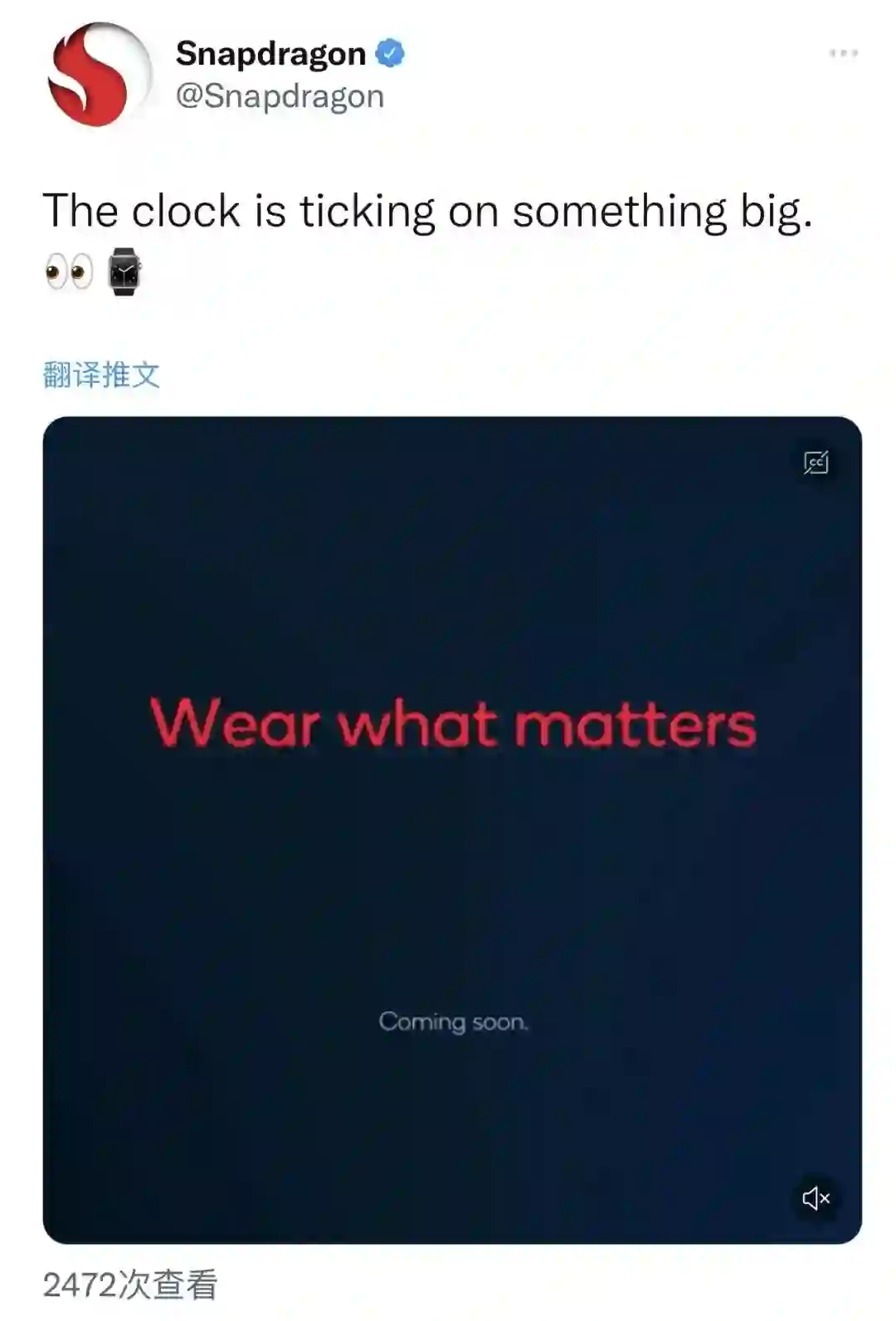今日,高通骁龙官方在推特发文表示即将推出下一代可穿戴 SoC。虽然目前还无法确认新款 Snapdragon Wear 处理器的细节信息,但此前有消息指称高通将推出新款 Snapdragon Wear 5100 系列芯片。