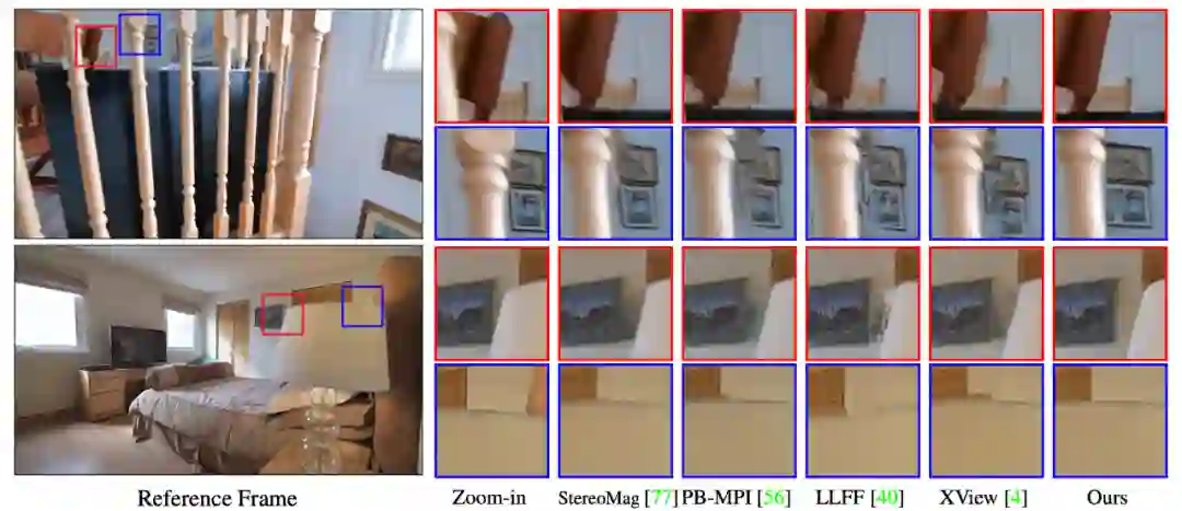首先,我们来看新方法与当前最优的视角合成在视觉效果上的对比结果: