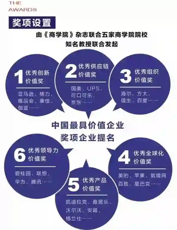 背景:本次评选缘起于2017年1月《商学院》杂志以北京大学国家发展研究院知名教授陈春花的价值型企业模型为依据,联合北京大学国家发展研究院、中国人民大学商学院、长江商学院、里昂商学院、清华-北卡EMBA等5大商学院知名教授和权威咨询机构专家发起的“寻找中国最具价值企业评选”活动。