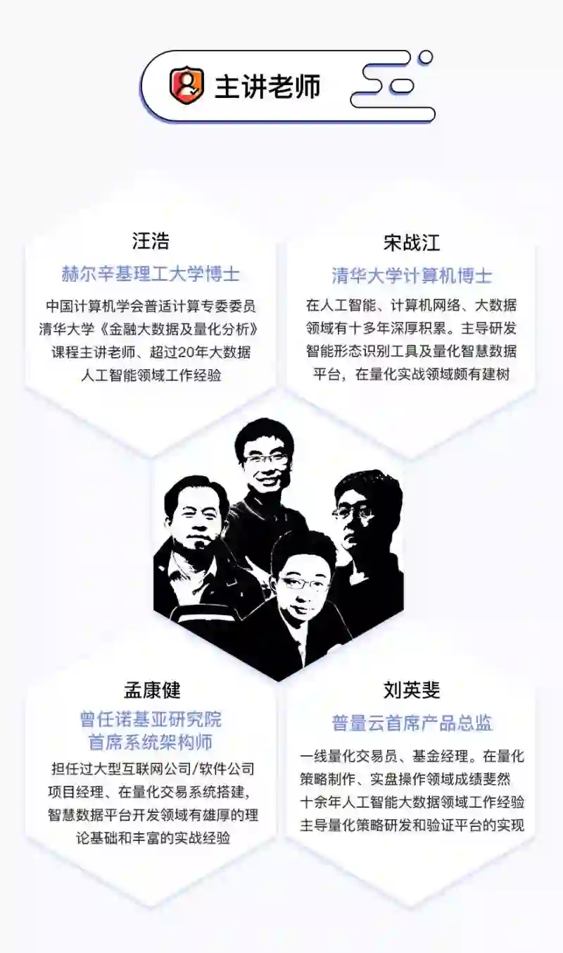 本次课程中,4位老师全程授课,手把手带你量化交易实战。