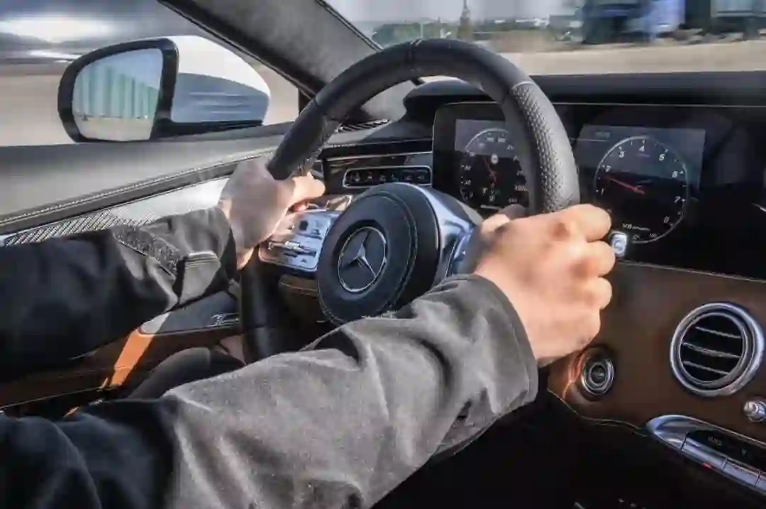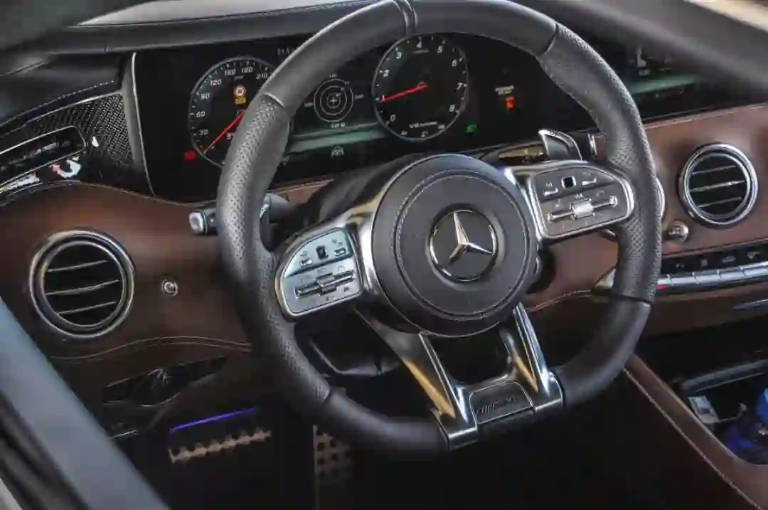 来到车内,大量采用真皮包裹的内饰依旧是我们认识的 S 级大哥,即便这次它采用的是双门四座布局。环绕式的中控台设计搭配棕色的真皮包裹有了几分游艇的味道,大面积的碳纤维面板意在提醒你,身着华丽外衣的它亦是一台性能巨兽。作为旗舰的S级,自然不会因为改换轿跑外衣而抛弃诸多配置,从大尺寸的全景天幕、座椅按摩到电吸门,你能想象到的配置它都有。当你将它开上公路,它的座椅还会根据车辆的转向动作对腰部护翼进行充气,为驾驶者提供更充足的侧向支撑。