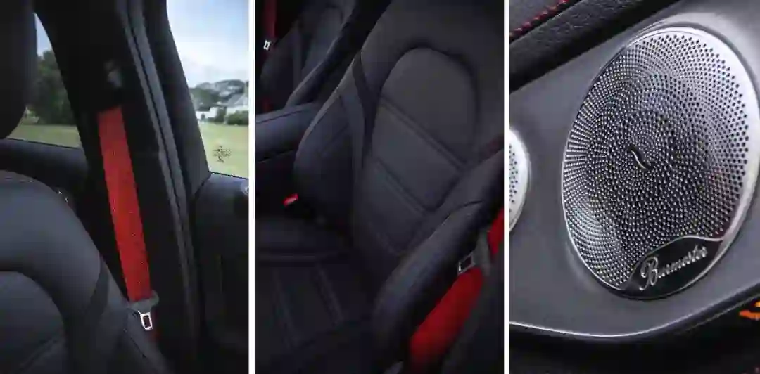 坐进车内,你就能立刻感受到 AMG 所营造出的氛围,碳纤维饰板、打孔真皮的座椅和红色的安全带无不体现着它的运动身份。在内饰氛围的营造方面,AMG 无疑是走在同行们前列的。不过有别于 AMG C 43 4MATIC 特别版上的桶形座椅,它的座椅在给你带来出色包裹性的同时,也会给你带来更舒适的乘坐体验。下车离开时,我不忘多闻一下 AMG 内饰的独特气息,同时用手摸摸特别版车型标配的柏林之音音响罩,绝对是正品!话不多说,让我们开启旅程。