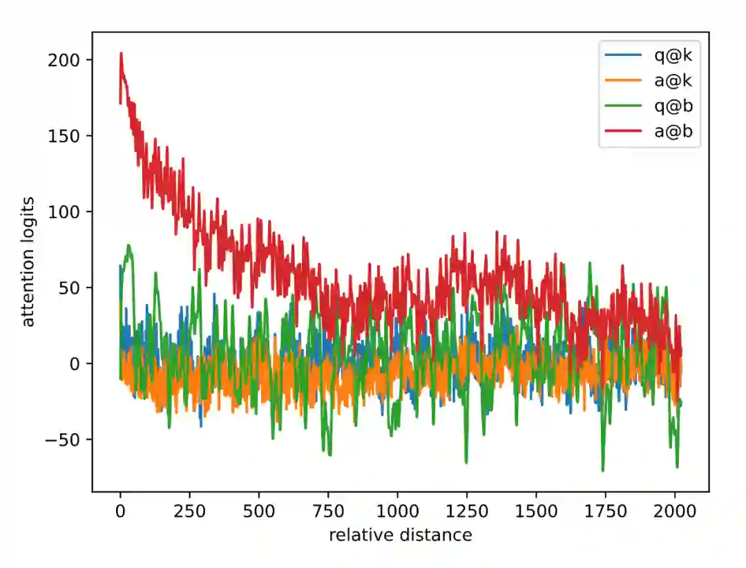 所以笔者不禁猜测,难道原论文中的这个加性相对位置编码,就是用来增强长度外推性的?GAU 的作者竟然如此有先见之明,早在 Sandwich 之前就提出了类似的想法来解决长度外推性问题?