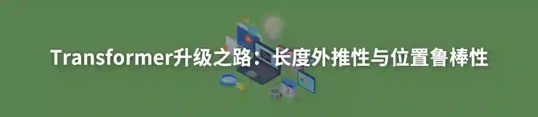 不过,对于笔者来说,这种往 Attention 矩阵上额外加上一项来增强长度外推性的方案都显得不够优雅,所以不管原作者意图如何以及实际效果如何,笔者都不倾向这样做。有什么类似的但几乎“无感”的方案呢?笔者考虑到,如果