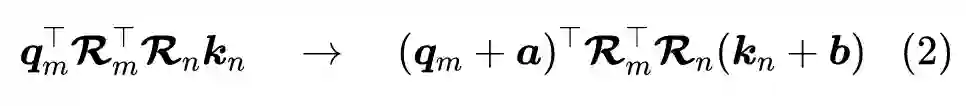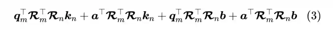 无关,但从式(3)我们就知道,经过 RoPE 后,