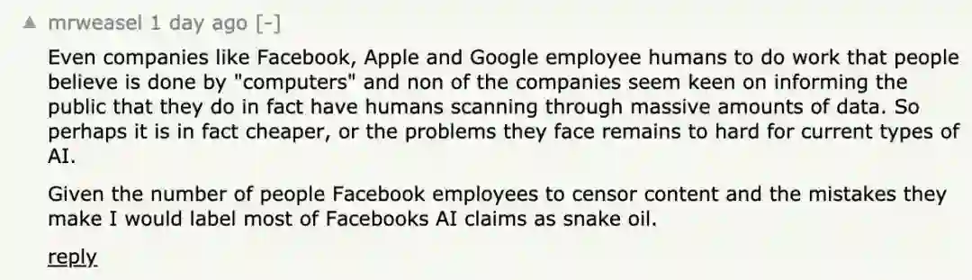 有人提及,连Facebook、Google这样的科技巨头都在AI方面造假。