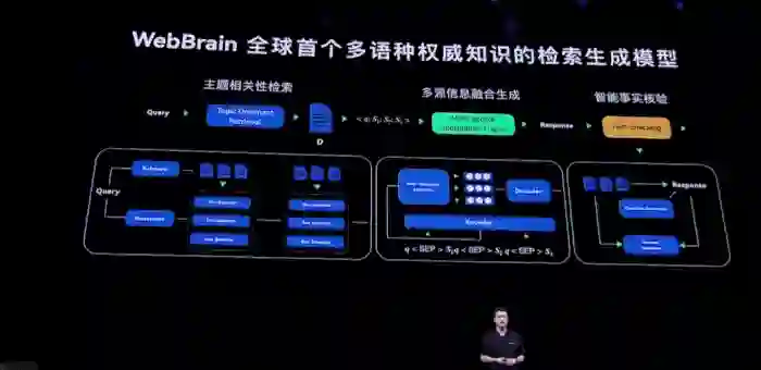 如今在搜索复杂问题时,我们往往无法直接得到答案。搜索引擎会显示出和关键词有联系的大量词条,但直接回答问题的内容往往需要人们自行整合。WebBrain 是全球首个多语种权威知识检索生成模型,可以把不同语言中的内容整合起来,形成直接可用的答案。
