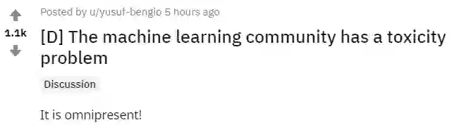 参考链接:https://www.reddit.com/r/MachineLearning/comments/hiv3vf/d_the_machine_learning_community_has_a_toxicity/