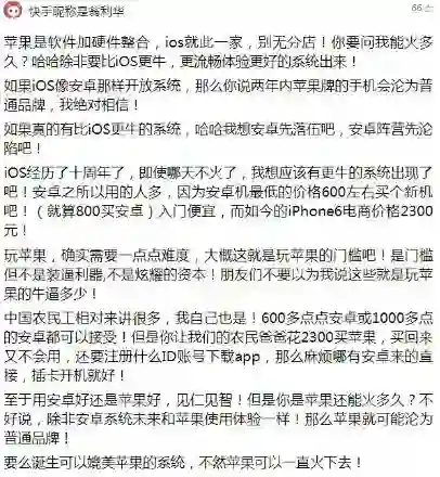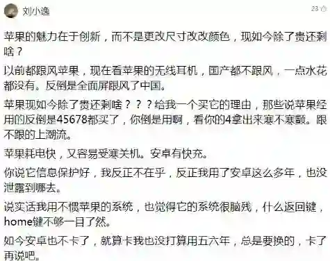 除此之外,也有一些网友认为,随着国产手机的崛起和安卓系统的优化,没必要再去花这么多的钱买苹果了。