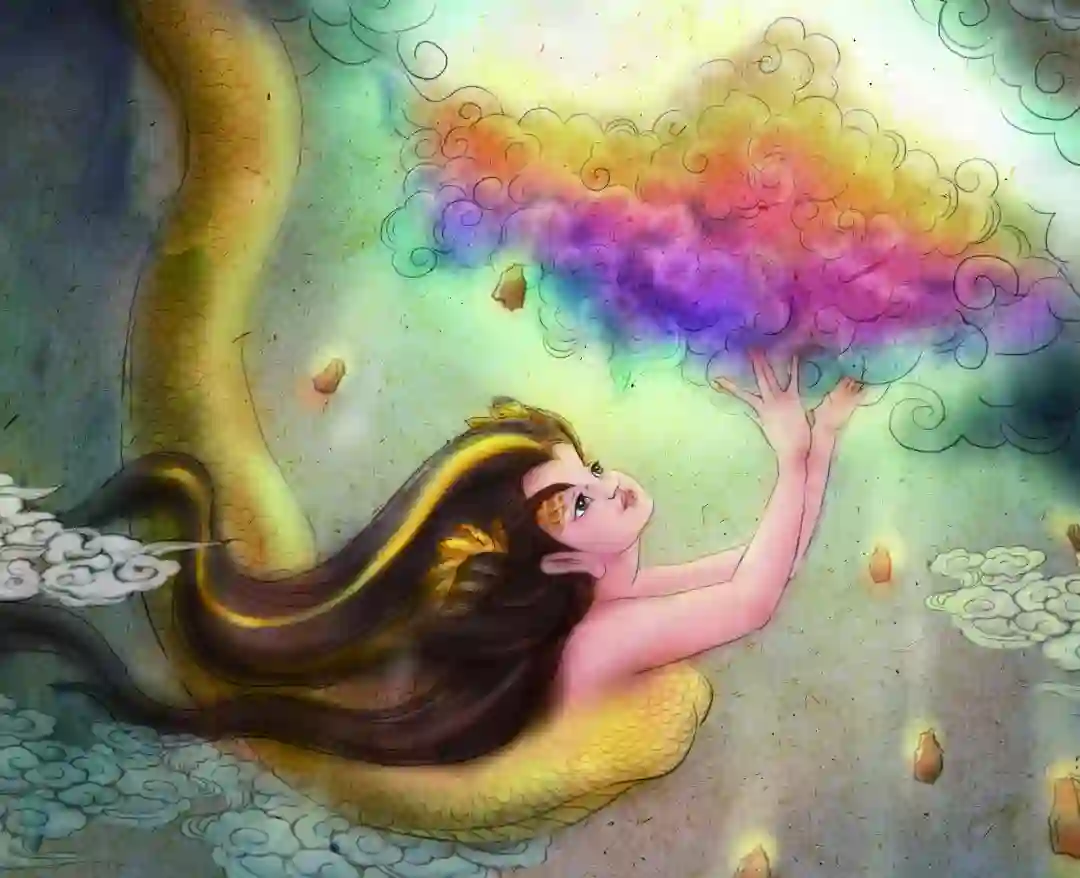 人们依着造人的祖宗之法自我繁衍。然而女娲也没能闲着,传说与人间无涉的火神祝融和水神共工还是搞出了幺蛾子,败者穷凶极恶地怒触不周之山,就为了看人间洪水滔天,然而他似乎终于也没有死,只是劳累了女娲奋力补天。