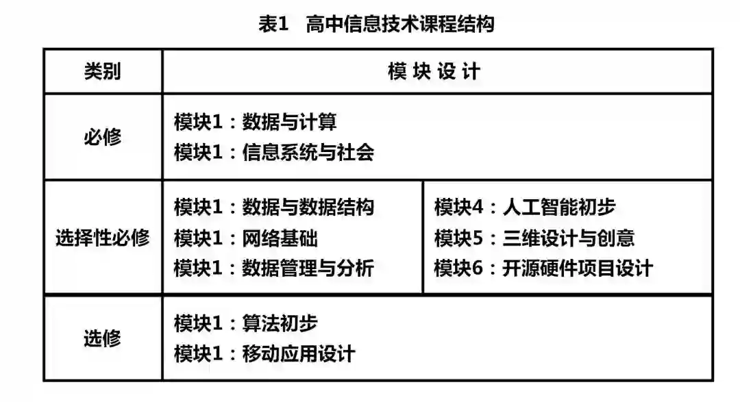 高中信息技术选择性必修课程是根据学生升学、个性化发展需要而设计的,包括“数据与数据结构”“网络基础”“数据管理与分析”“人工智能初步”“三维设计与创意”“开源硬件项目设计”六个模块。