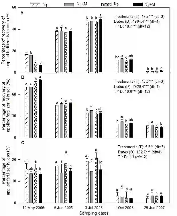 图3. 肥料氮在土壤-作物系统中的分配与去向