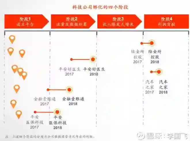 平安金融科技主要包括陆金所、平安好医生、金融一帐通、平安医保科技,汽车之家这五家公司,这五家公司发展都很迅猛,如果把盈利阶段分为设立平台、流量及数据积累、收入爆发式增长及利润贡献四个阶段,这五家公司分别处于以下阶段: