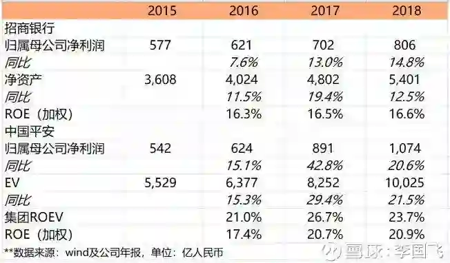 资产增长方面,自2016年三年来招行净资产增幅分别是11.5%、19.4%和12.5%,而平安集团EV增长分别是15.3%、29.4%和21.5%。