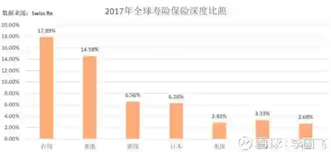 2017年中国的保险密度(每年人均寿险保险支出)只有225美元,低于全球人均353美元的水平。