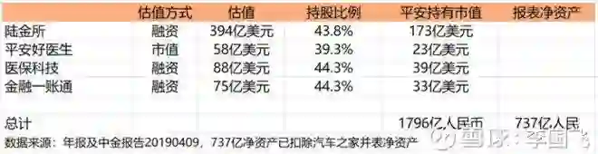 目前有盈利的只有陆金所和汽车之家(平安好医生已经非常接近盈利了),但是整体上也已经盈利了,2018年金融科技板块一共贡献了67.7亿元归母营运利润,占集团的比例为6.0%。这几家(不包括汽车之家)公司目前的估值情况如下: