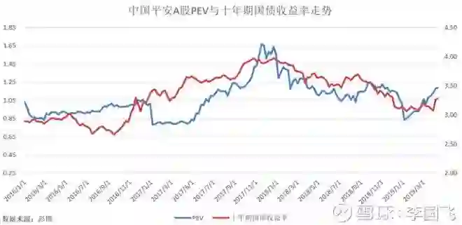 利率趋势对平安估值影响一直比较大,在利率由低往上走的过程,估值容易提升,而利率由高往下走的过程,情况则相反。两者的相关性可见下图,可见相关性还是比较强的。