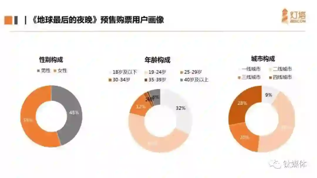 在随后释放出的宣传物料中,官方才正式打起了“一吻跨年”的营销牌,也助推这样的观影仪式感进一步释放,制造了一个跨年夜的情人节档期,一下子让文艺片的受众获得了大幅度增长,尤其吸引了大量三四线城市观众,这个群体在预售票房中的占比高达48%。