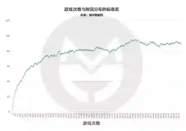 我们以所有玩家财富值的标准差来衡量社会贫富分化程度,按时间序列做出图来长这样: