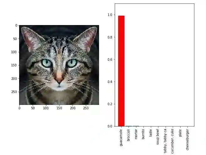 这种对抗图像与原始图像在视觉上无法区分,没有可见的人为加工。但是它会以很高的概率分类为“鳄梨酱”。