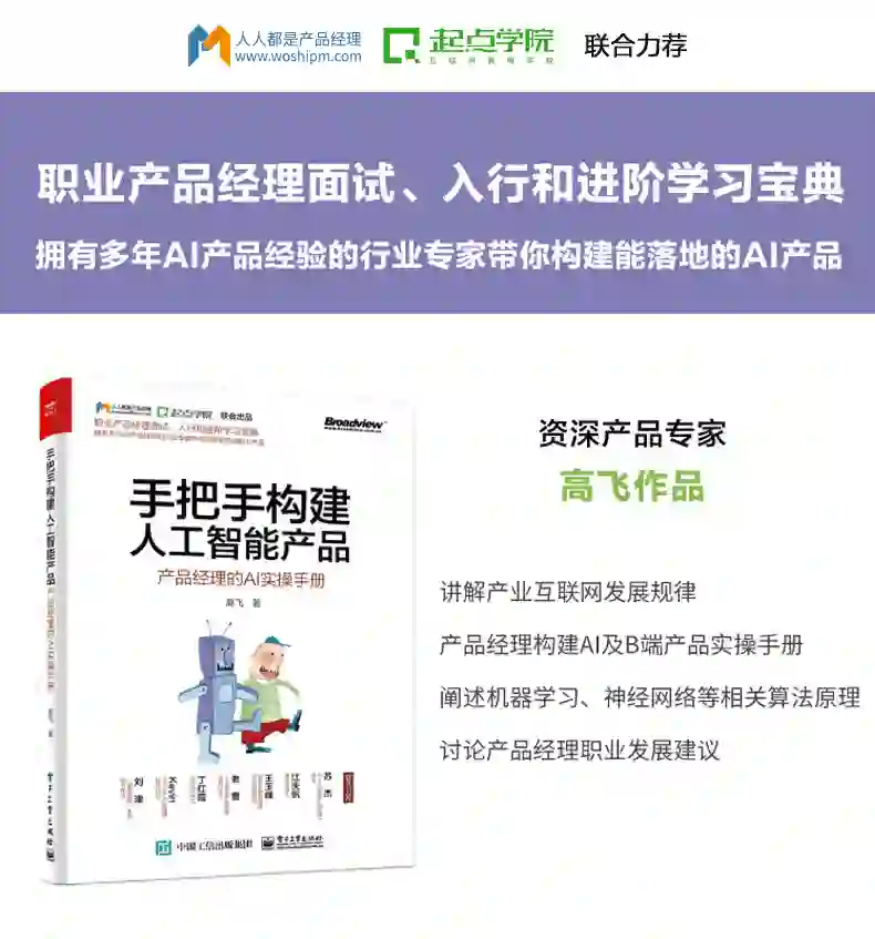 作为2015年北京第一期学员,从药剂师转行做产品,后来持续在医疗产品领域深耕,产品技能和医疗行业深度实践,也陆续和起点的校友们做了一些分享,作为拥有超过 7 年人工智能算法与产品经验的产品人,也将自己长期的产品工作中沉淀的方法,总结归纳成一本书籍,且1年前开始写的书稿终于上市。