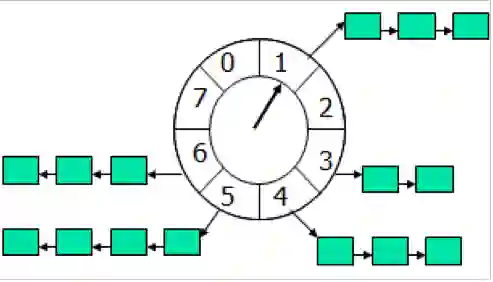 如下是一种称为Timewheel的算法,实际上是模仿TCP发送包之后用来计算超时的算法,试想,如果操作系统底层对每个tcp包都新建一个线程来计时,那操作系统早挂了。