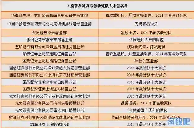 17、海通证券深圳红岭中路:敢死队大本营,传闻、主流热点,以及题材均是其炒作的目标。