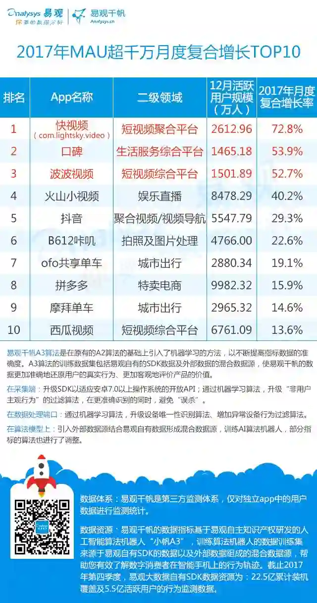 2017年度App TOP1000 | 金融、短视频超速增长 共享单车季节效应放大