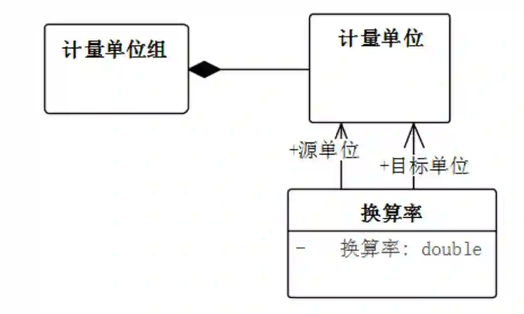 我们举一个领域模型的例子,我们做个业务系统的人都会用过计量单位。计量单位比较简单的一种设计方式就是设计一个计量单位组,计量单位组里面可以包含多个计量单位,单位与单位之间有一个换算关系。计量单位组中的单位和单位之间换算关系都交给用户自己定义。