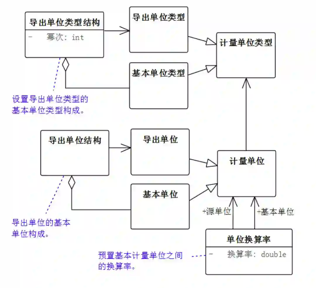更重要一点的是,由于导出单位类型与基本单位类型之间存在确定的量纲换算关系,只要设置基本单位的换算关系,就可以推导出导出单位类型的单位换算关系。