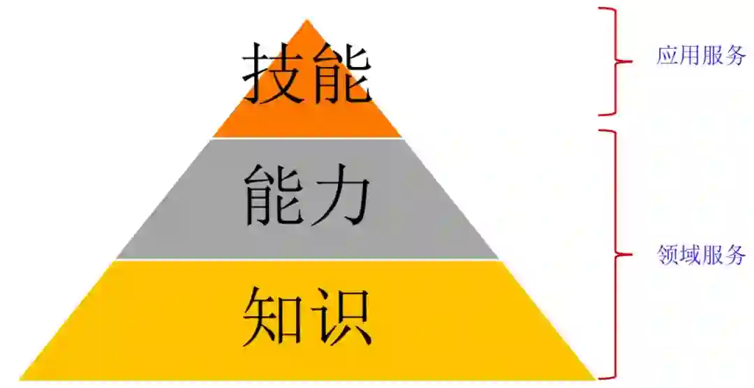 我们构建一个系统也一样,将系统的技能和系统的能力进行分离解耦,我们把能力和知识的服务叫做领域服务,技能服务叫做应用服务。