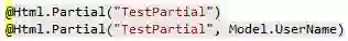 使用方法(注:第一个参数是Partial View的名称,默认情况下Partial View文件存储于Views/Shared目录下,如果文件不在这个目录下需要在参数中体现具体目录):