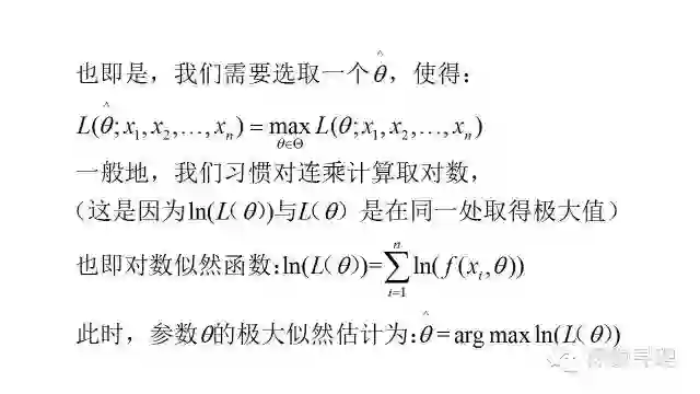 3)对对数似然函数求解最大值(一般可以通过求导数解得);