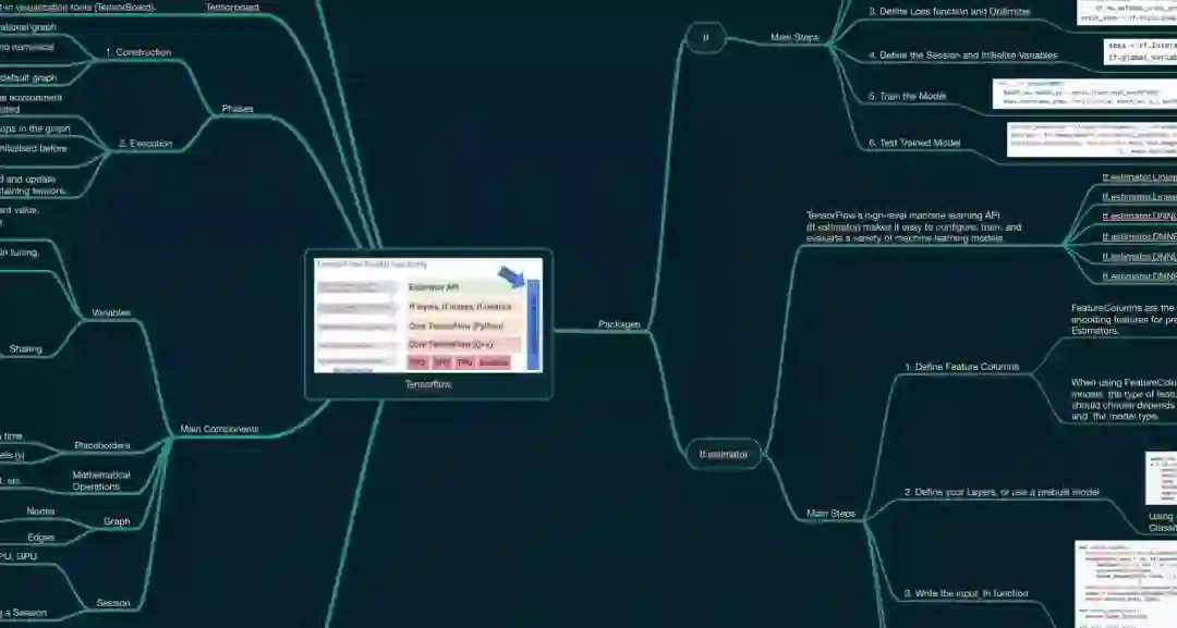 TensorFlow是一个采用数据图模式的开源数据计算包。这个思维导图列出了Tensorflow一些基本的模块以及整体架构。