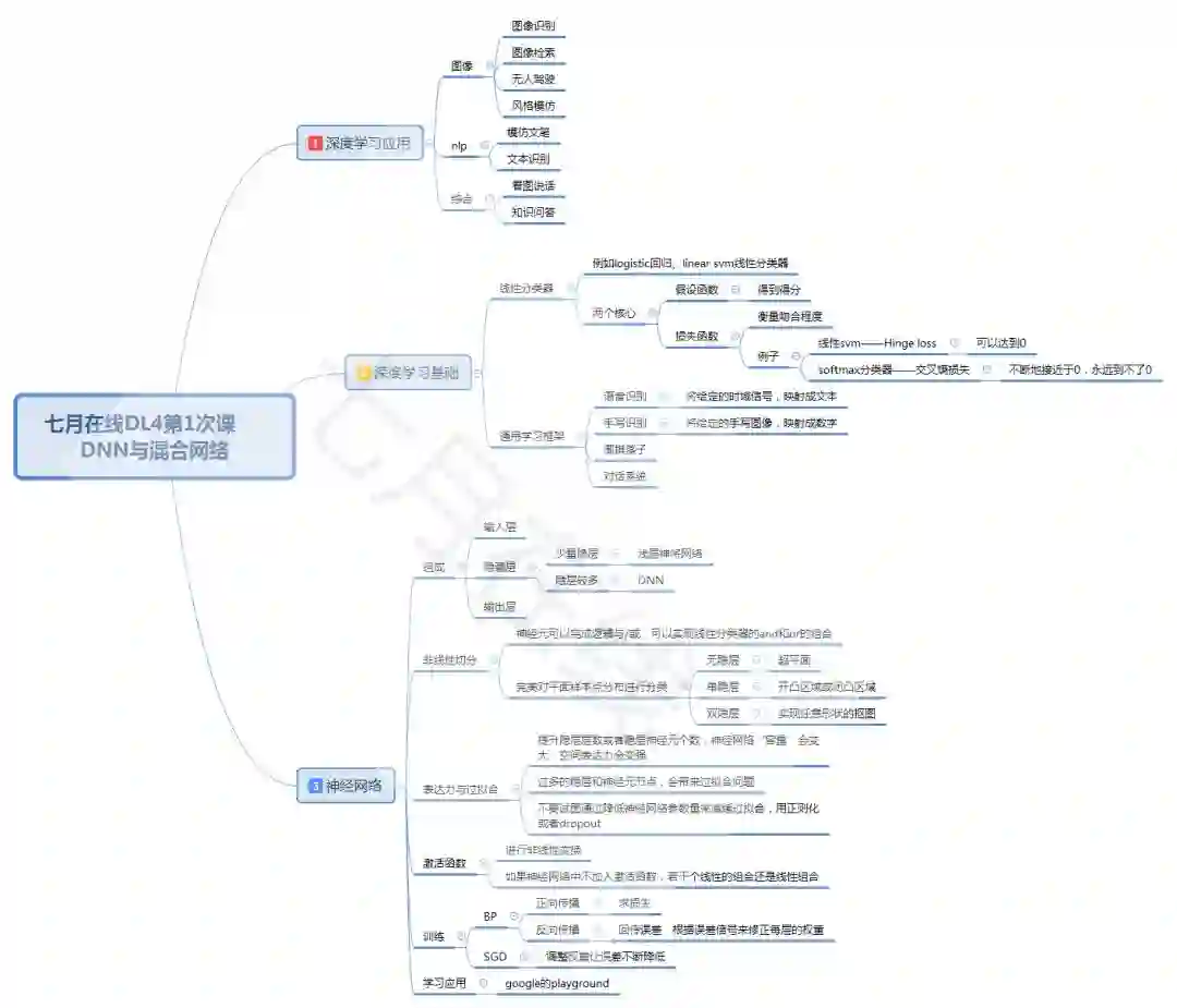 除了以上的这些导图,小编还整理了一些深度学习思维导图,深度学习第四期前6节课程的导图,这个是我们学员吴同学做的,和大家分享一哈~~