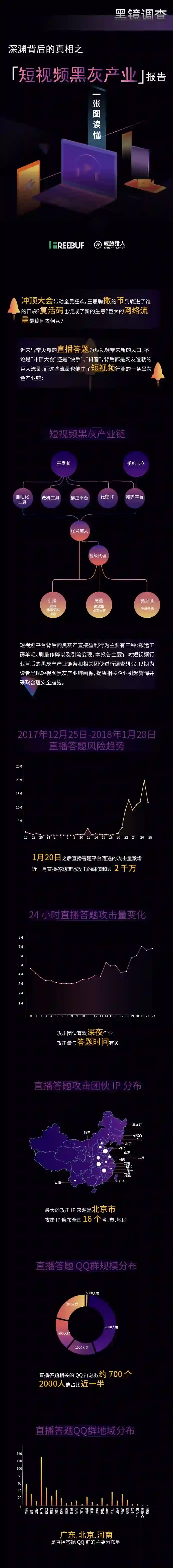 1.近一年短视频和直播答题的大火也相应地带动了短视频黑灰产的发展;目前短视频黑灰产已经群体化、规模化,形成了完整的产业链;
