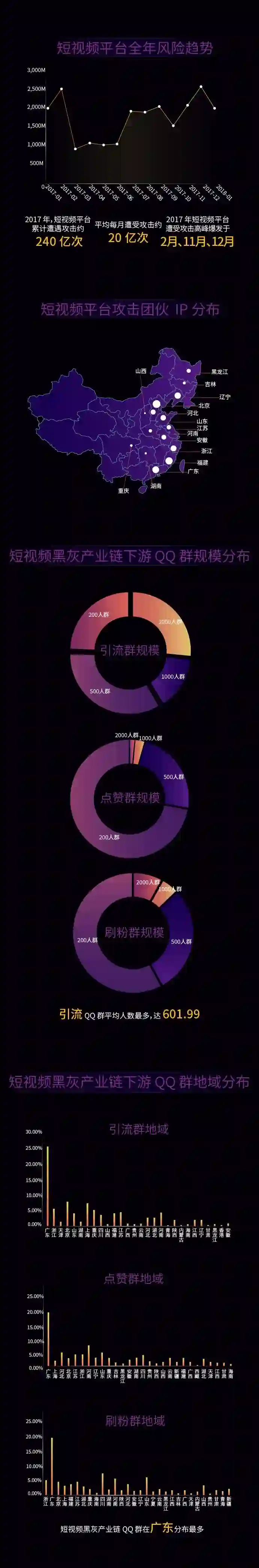 2. 2017 年,短视频平台月平均遭受攻击20 亿次左右,团伙行为极度疯狂;