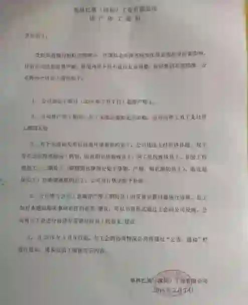 通知中明确表示:公司于2018年5月7日起正式停产停工,员工在停工期间无须出勤。对于申请离职的员工,公司将依法支付经济补偿!