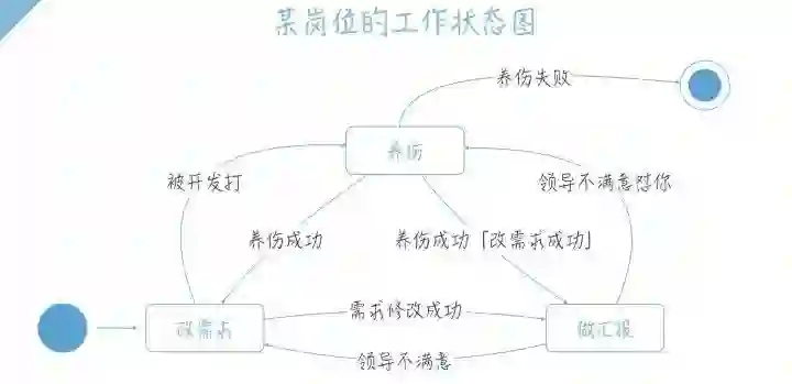 比如我们可以画一个状态机图来展示某岗位的一生: