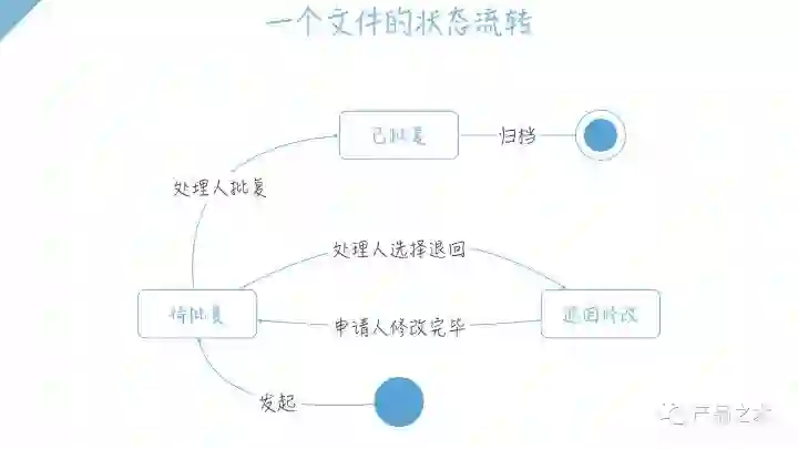 首先我们看下下面这张状态机图,展示了一张简单的单审批人文件的状态流转情况。