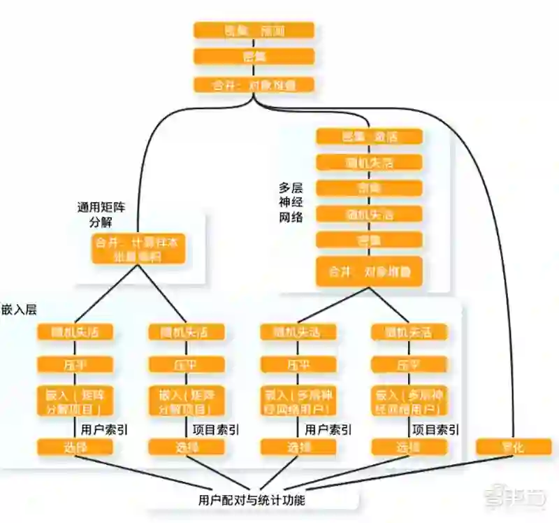 NCF模型是目前最常用的深度学习推荐算法之一,将GMF结构+多层神经网络融合,获得更好的推荐效果。