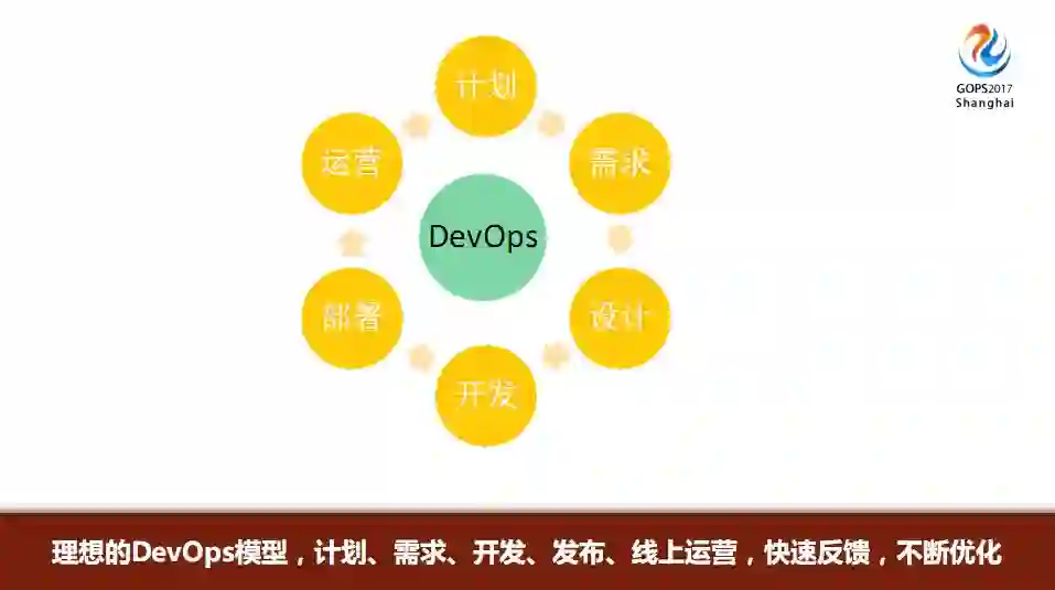 首先按照传统的讲一下DevOps模型。这是理论上的DevOps模型,计划、需求、设计、开发、部署。现实的情况下,目前没有全部打通的,这是由于各种原因导致各个系统之间是很难集成的。什么原因呢?就是组织架构决定了是否能够打通。