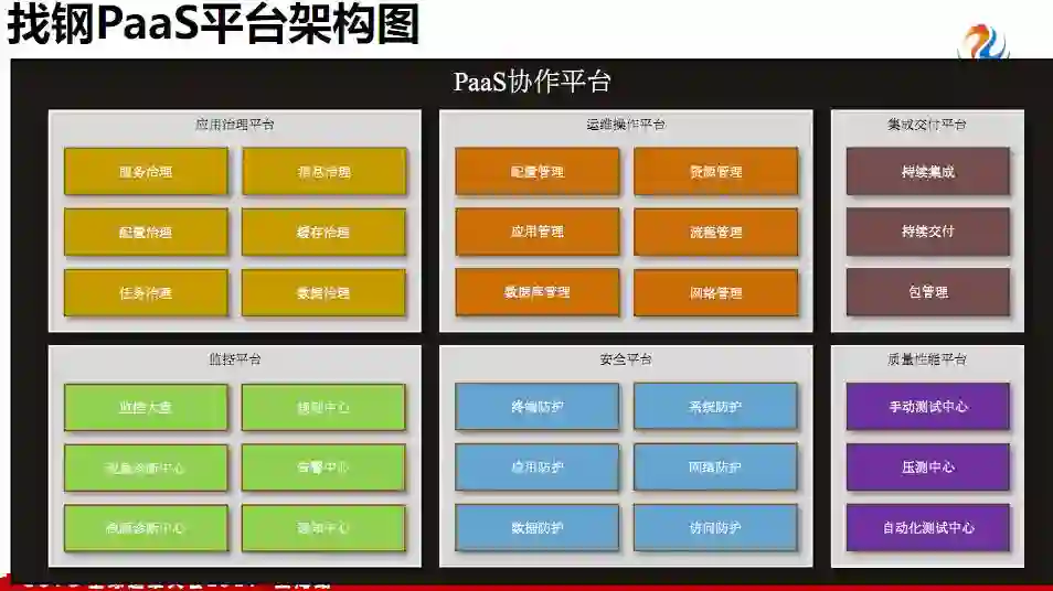 这是找钢网的PaaS平台,这里还有一个研发管理没有列进来。虽然数据讲起来很简单,实际上推动起来很难。想统一别人是非常难的事情。可能做一个系统只需要一个月,统一规范别人可能要一年。找钢网一年多的时间把平台搭建起来,并且形成统一的规范,出数据度量别人,其实成绩已经非常不错了。