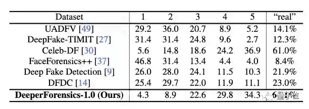 根据反馈,专家们认为,与FaceForensics++、Celeb-DF等流行的Deepfake检测数据集相比,DeeperForensics-1.0更加真实。