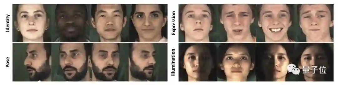 脸部面对镜头的角度在-90°到90°之间变化。还设置了九种不同的照明效果。