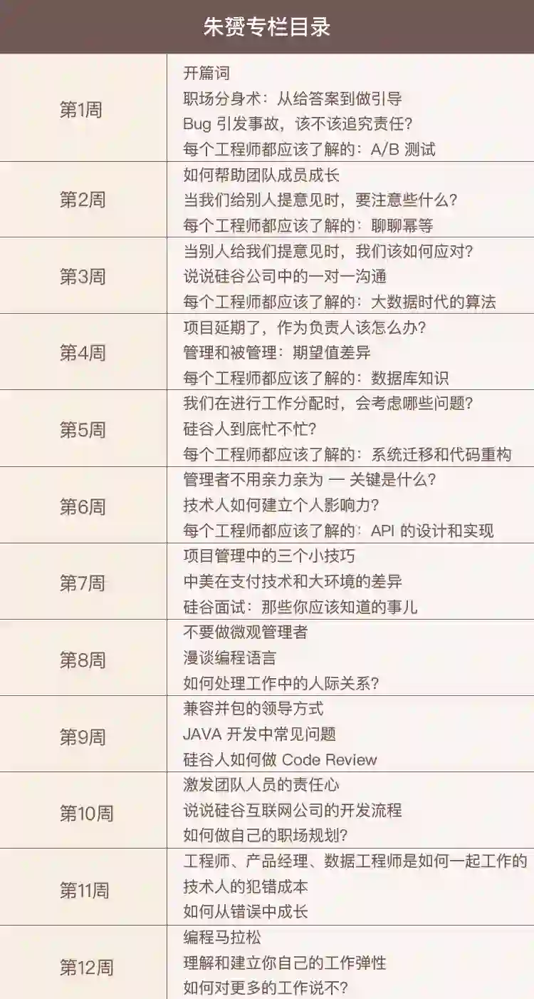 朱赟,英文名 Angela,很多人称她为“硅谷女神”,但她更喜欢别人叫她安姐。《朱赟的技术管理课》专栏是朱赟博士在极客时间撰写并维护的精品专栏课程。在专栏中,Angela 会更加聚焦在技术管理、技术实践、硅谷文化和个人成长领域,把自己在技术和管理上的领悟及忠告、在硅谷工作的体会与见识,通过这个专栏分享给大家。