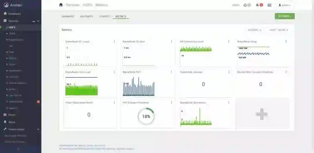 CDH是一款开源的集部署、监控、操作等于一体的Hadoop生态组件管理工具,也提供收费版(比免费版多提供数据备份恢复、故障定位等特性)。CDH提供的HDFS监控界面在体验上是非常优秀的,是对HDFS监控指标深入发掘之后的浓缩,比如HDFS容量、读写流量及耗时、Datanode磁盘刷新耗时等。