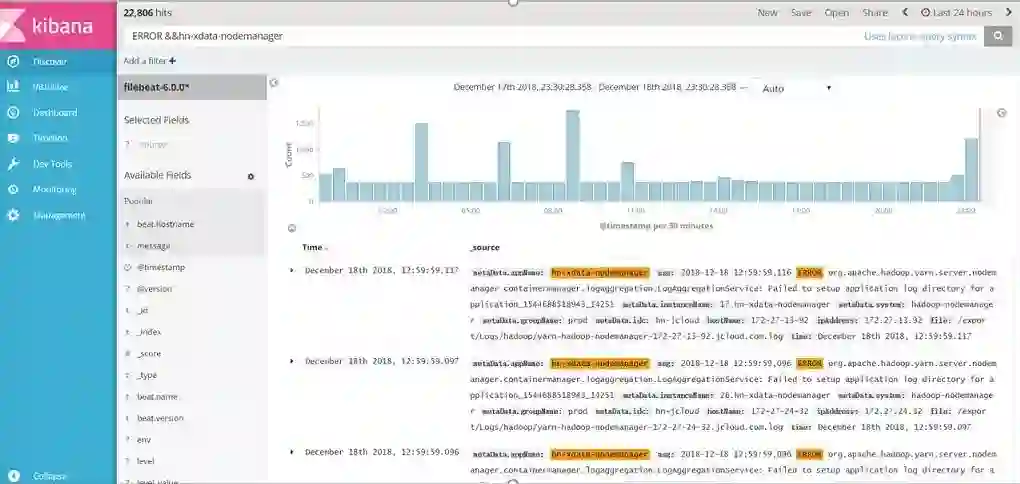 ELK-Hadoop:主要用于全局日志检索,以及错误日志关键字监控。