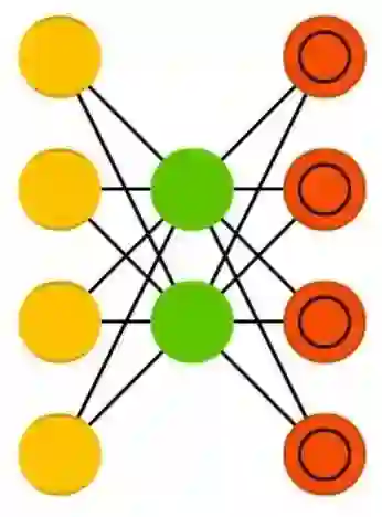自编码( AE )有一点类似 FFNN, 因为 AE 更像是一个 FFNN 的别的用法而不是一个完全新的结构。自编码的基本思想是对信息自动地编码(像是压缩但不是加密),由此得名。整个网络的形状像一个沙漏,隐藏层比输入层和输出层都小。 AE 通常是关于中间层(一层或两层,因为层数可以是奇数或偶数)对称的。最小的一层通常在最中间,这里是信息最为压缩的地方(网络的阻塞点)。中间层的上方都称为编码区,下方都称为解码区,中间(意不意外)称为编码。我们可以给定输入,误差设置为输入和输出的差异,并用反向传播误差来训练网络。 AE 可以设计成对称的权重结构,这样编码权重和解码权重就一样了。